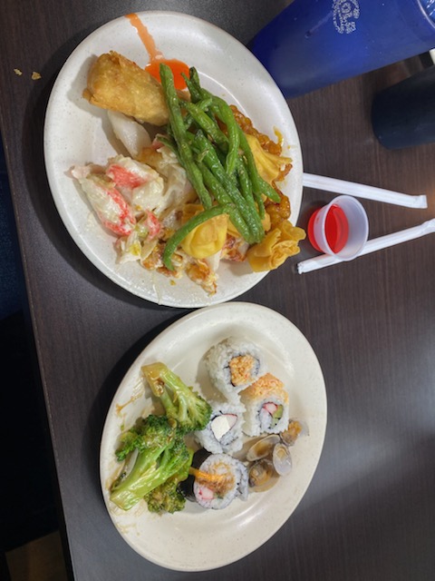 The food was excellent, lots of variety. Even of the expensive sushi, shrimp and crab items. The soup noodles were mushy since it sat too long. They have a create your own stir fry station. Even if you don't like Chinese, they have tons of American variety for everyone.2 tables of dessert plus an ice cream bar. Something for everyone. We paid senior lunch price was $12.50. I have no idea what other prices are- no signs anywhere. The bathroom stall was really small especially since the toilet paper dispenser was too large.